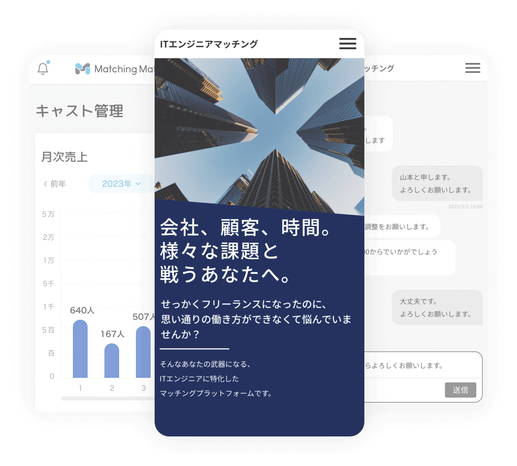 Matching Matchのご利用をスタートいただけます。担当者が責任を持ってサポートさせていただきますので、お困りの際はいつでもご相談ください。
